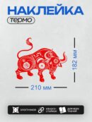 Термонаклейка на одежду DTF / Красный бык с орнаментами в восточном стиле.