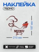 Дизайн: Логотип меню с тарелкой, ложкой и декоративными элементами. — идеально подходит для декора и восстановления одежды.