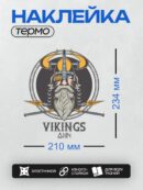 Термонаклейка на одежду DTF / Логотип с викингом, шлемом, копьями и надписью “VIKINGS ODIN”.