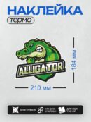 Термонаклейка на одежду DTF / Логотип с изображением зелёного аллигатора и надписью “ALLIGATOR”.