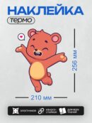 Дизайн: Милый красный медвежонок с поднятыми лапами, радуется. — идеально подходит для декора и восстановления одежды.