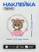 Дизайн: Милый медвежонок с розовым бантом и цветами. — идеально подходит для декора и восстановления одежды.