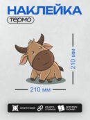 Термонаклейка на одежду DTF / Милый мультяшный бычок с большими рогами.