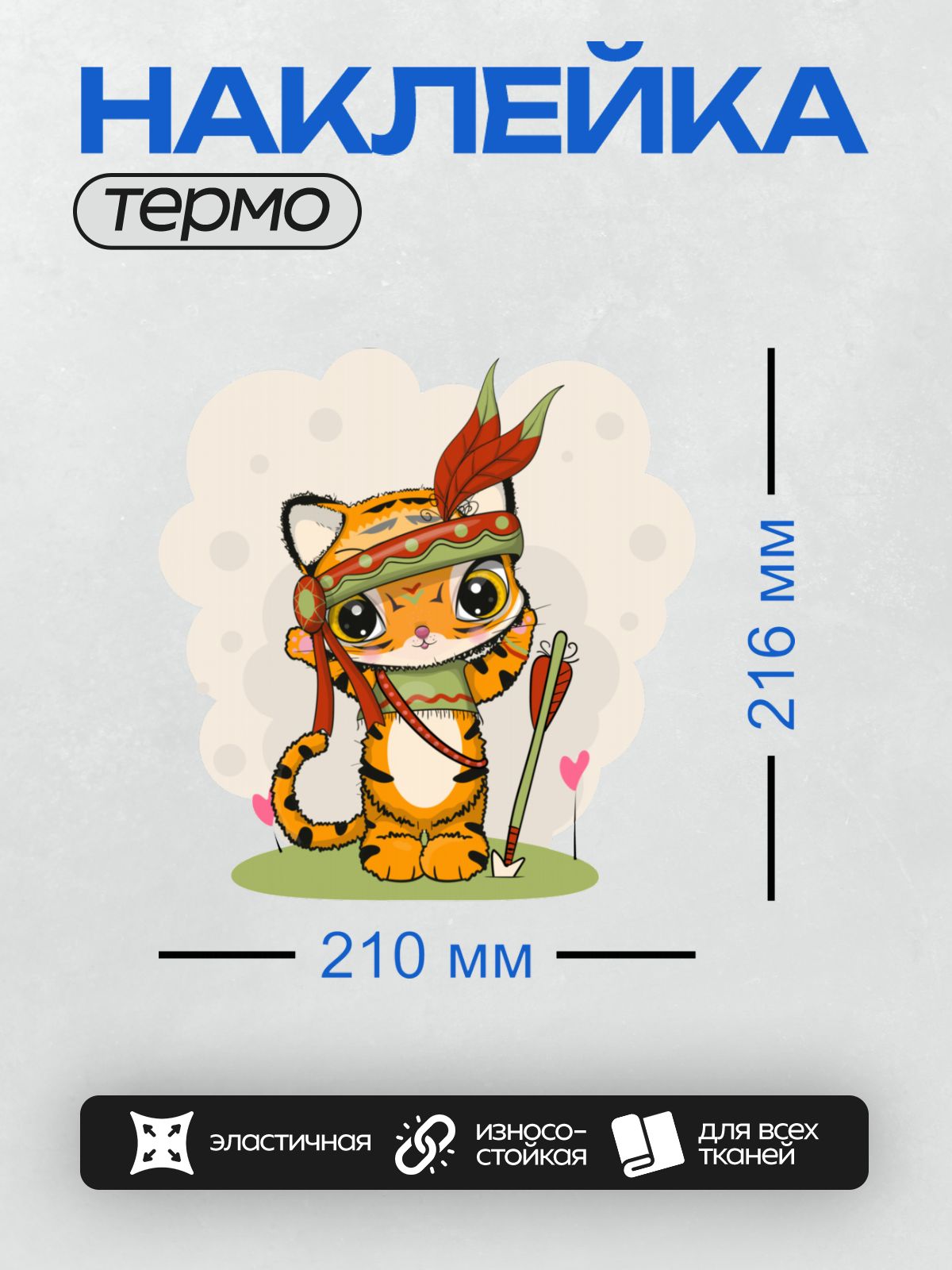 Дизайн: Милый мультяшный тигрёнок в трайбл-стиле с луком и стрелами. — идеально подходит для декора и восстановления одежды.