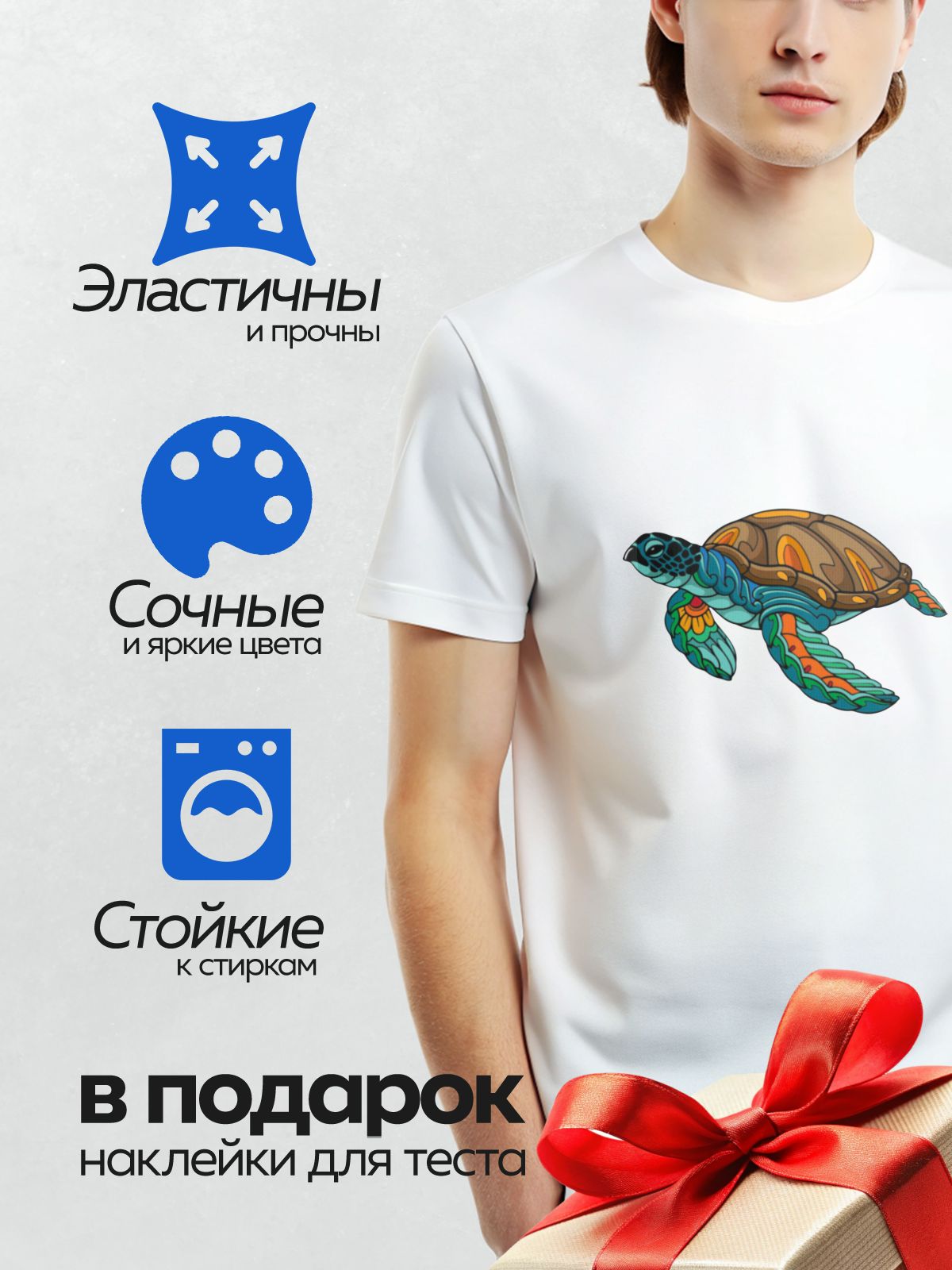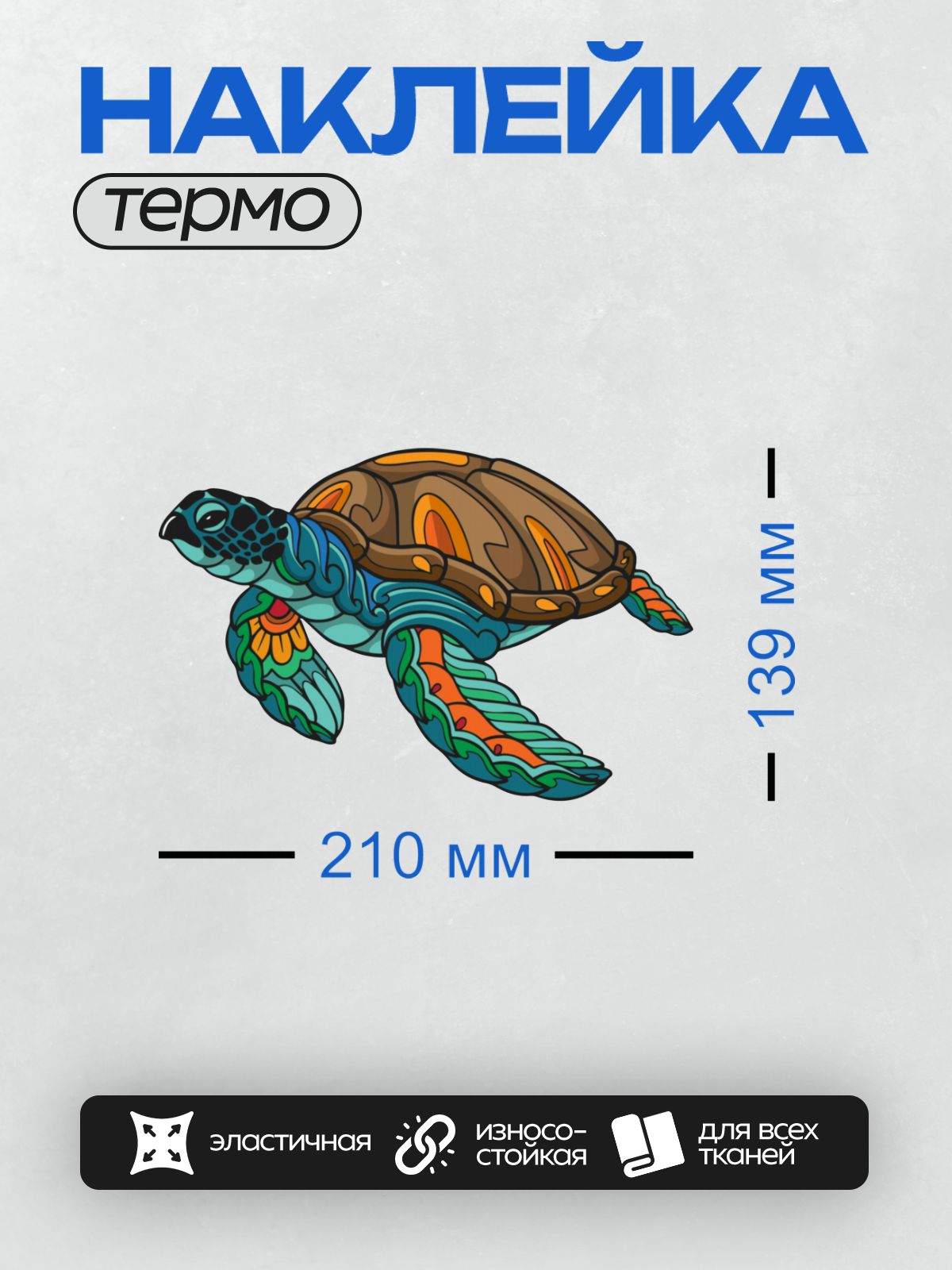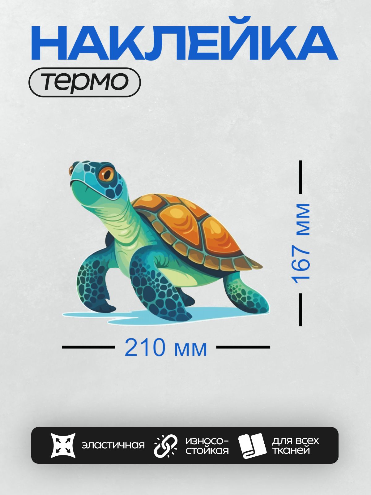 Термонаклейка на одежду DTF / Мультяшная черепаха с ярким оранжевым панцирем.