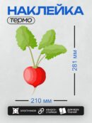 Термонаклейка на одежду DTF / Мультяшная редиска с яркими зелёными листьями.