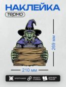 Дизайн: Мультяшная ведьма с тыквой, метлой и мышью. — идеально подходит для декора и восстановления одежды.