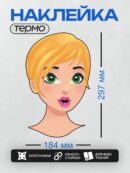 Дизайн: Мультяшная девушка с короткими светлыми волосами и фиолетовой прядью. Большие карие глаза с выразительными ресницами, нежная улыбка. — идеально подходит для декора и восстановления одежды.