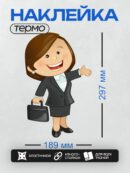 Дизайн: Мультяшная деловая женщина с портфелем улыбается. — идеально подходит для декора и восстановления одежды.