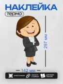 Дизайн: Мультяшная деловая женщина в костюме с улыбкой. — идеально подходит для декора и восстановления одежды.