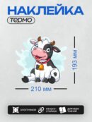 Термонаклейка на одежду DTF / Мультяшная корова с колокольчиком на шее.
