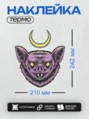 Дизайн: Мультяшная летучая мышь с желтыми глазами и полумесяцем. — идеально подходит для декора и восстановления одежды.