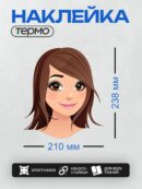 Дизайн: Мультяшное лицо девушки с каштановыми волосами и яркой улыбкой. — идеально подходит для декора и восстановления одежды.