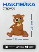 Термонаклейка на одежду DTF / Мультяшный медведь ест красные ягоды с ветки.