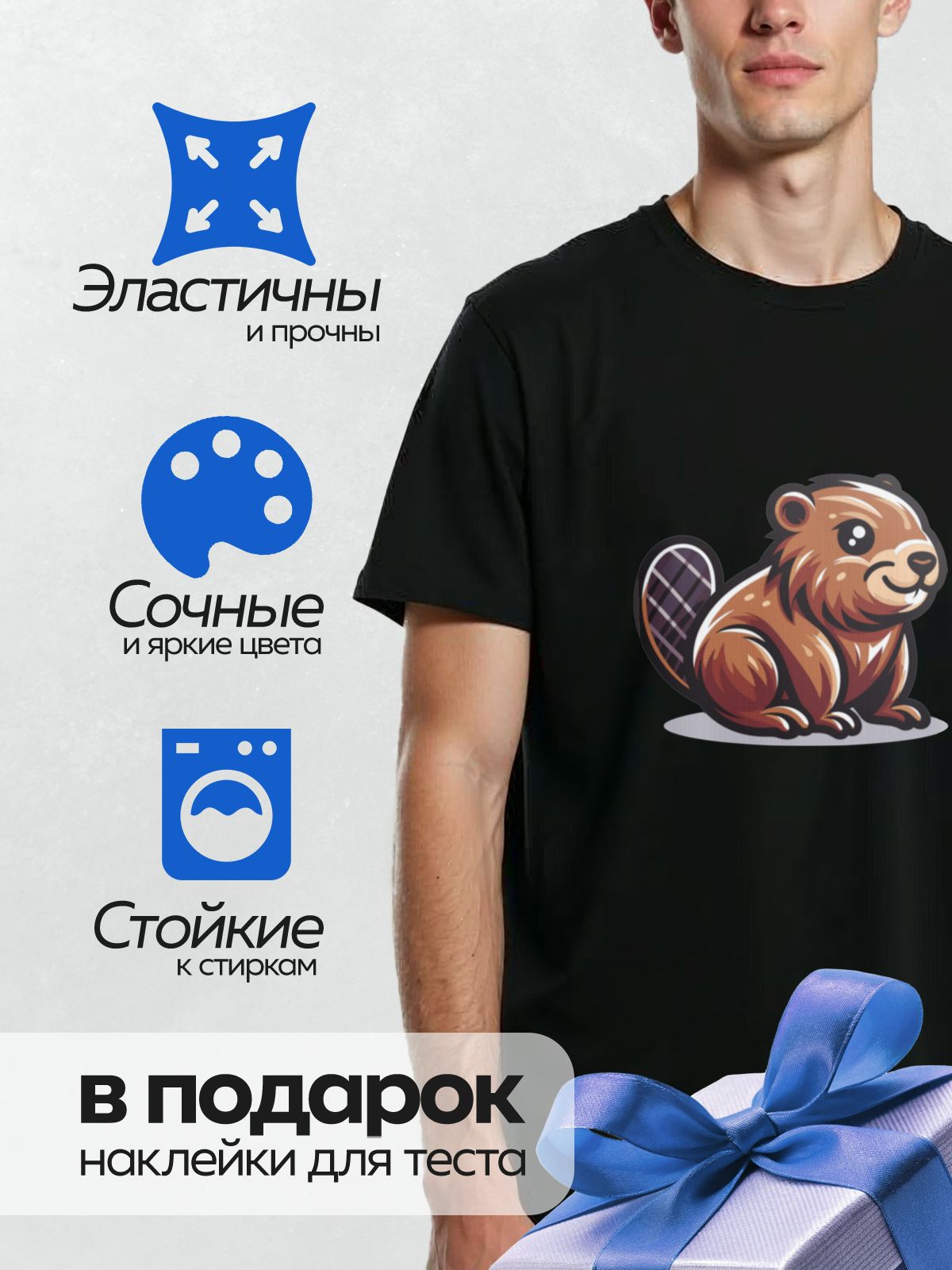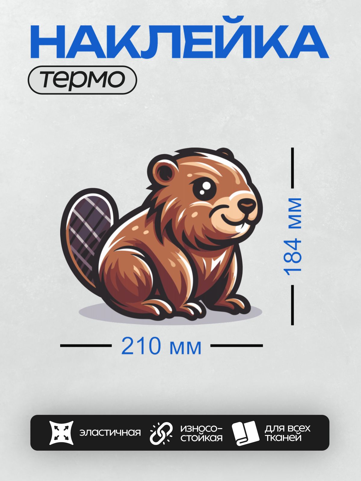 Термонаклейка на одежду DTF / Мультяшный бобр с дружелюбной улыбкой.