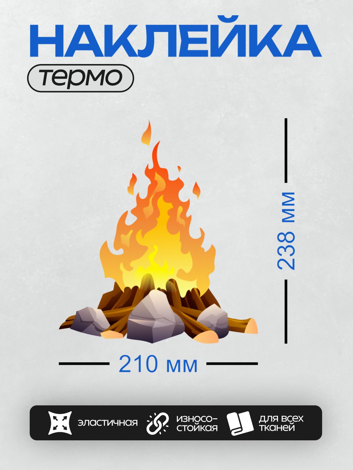 Дизайн: Мультяшный костёр с дровами и ярким пламенем. — идеально подходит для декора и восстановления одежды.