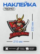 Дизайн: Мультяшный самурай с мечом и красным шлемом. — идеально подходит для декора и восстановления одежды.