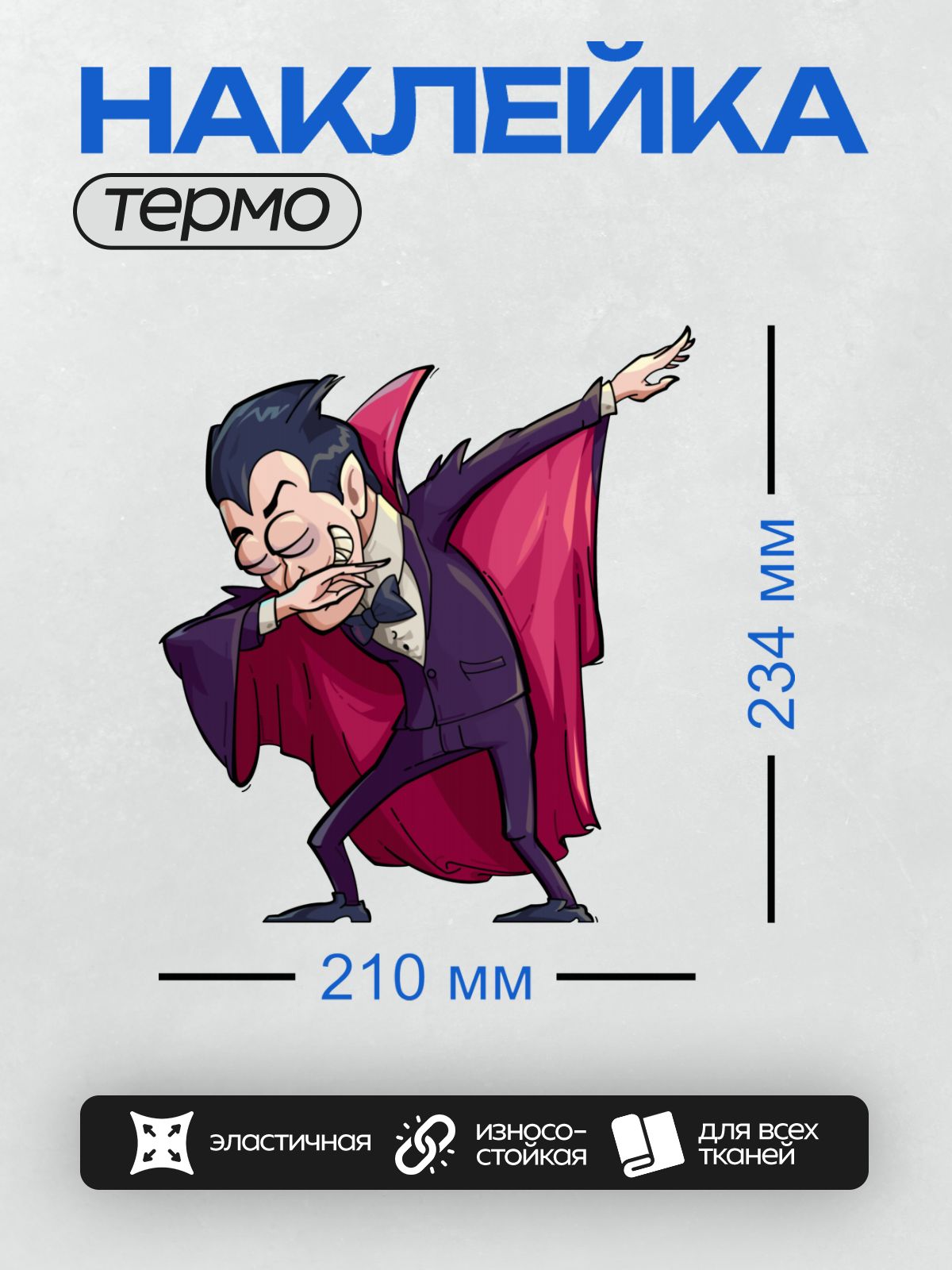 Дизайн: Мультяшный вампир в красном плаще и костюме. — идеально подходит для декора и восстановления одежды.