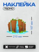 Дизайн: Мультяшный водопад, скалы, деревья, зелёная трава. — идеально подходит для декора и восстановления одежды.