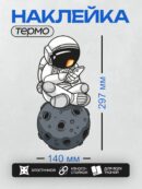 Дизайн: Мультяшный космонавт сидит на Луне в позе лотоса. — идеально подходит для декора и восстановления одежды.
