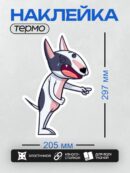 Дизайн: Мультяшный бультерьер с серьезным выражением лица. — идеально подходит для декора и восстановления одежды.