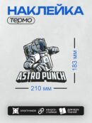 Дизайн: Мультяшный космонавт в динамичной позе с надписью “ASTRO PUNCH”. — идеально подходит для декора и восстановления одежды.