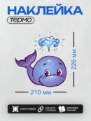 Дизайн: Мультяшный синий кит с облаком воды. — идеально подходит для декора и восстановления одежды.