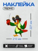 Дизайн: Мультяшный попугай в пиратской шляпе с мечом. — идеально подходит для декора и восстановления одежды.