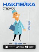 Дизайн: Мультяшный врач в голубом халате с фонендоскопом. — идеально подходит для декора и восстановления одежды.