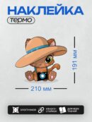 Термонаклейка на одежду DTF / Мультяшный котёнок в шляпе с фотоаппаратом.