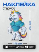 Дизайн: Мускулистый единорог с радужной гривой и хвостом. — идеально подходит для декора и восстановления одежды.