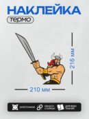 Дизайн: Мускулистый гном-викинг с красной бородой, в шлеме с рогами, держит меч. — идеально подходит для декора и восстановления одежды.