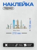 Термонаклейка на одежду DTF / На изображении представлены символы Нью-Йорка: Статуя Свободы, Бруклинский мост, небоскрёбы, включая Эмпайр-стейт-билдинг и Всемирный торговый центр.