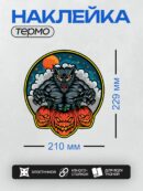 Дизайн: Оборотень на фоне луны и три резные тыквы. — идеально подходит для декора и восстановления одежды.
