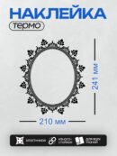 Термонаклейка на одежду DTF / Овальная рамка с черным узором из листьев и завитков.