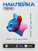 Дизайн: Разноцветная кошка в профиль с яркими оттенками. — идеально подходит для декора и восстановления одежды.