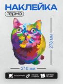Термонаклейка на одежду DTF / Разноцветная кошка в стиле поп-арт.