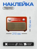 Термонаклейка на одежду DTF / Ретро-радиоприемник с красной панелью и деревянной рамкой.