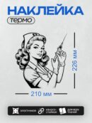 Термонаклейка на одежду DTF / Ретро-стиль, медсестра с шприцем, волнистые волосы, шапочка.
