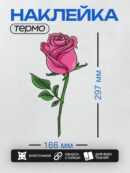 Дизайн: Розовая роза с зелёными листьями и стеблем. — идеально подходит для декора и восстановления одежды.