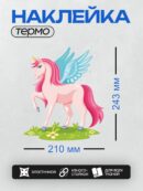Дизайн: Розовый единорог с крыльями, рогом и голубой гривой. — идеально подходит для декора и восстановления одежды.