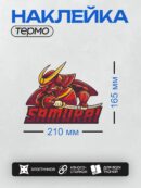Дизайн: Самурай в красных доспехах с золотыми рогами и мечом. — идеально подходит для декора и восстановления одежды.