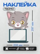 Дизайн: Серый котёнок с большими жёлтыми глазами за ноутбуком. — идеально подходит для декора и восстановления одежды.