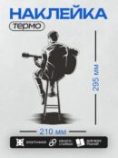 Дизайн: Силуэт гитариста, играющего на гитаре, в минималистичном стиле. — идеально подходит для декора и восстановления одежды.