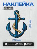 Термонаклейка на одежду DTF / Синий якорь с золотой верёвкой, морской стиль.
