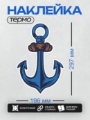 Дизайн: Синий якорь с коричневой верёвкой, морской стиль. — идеально подходит для декора и восстановления одежды.