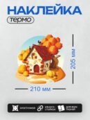 Дизайн: Сказочный домик с петухом на крыше, окружённый осенними деревьями и тыквами. — идеально подходит для декора и восстановления одежды.