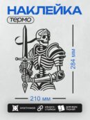 Дизайн: Скелет в доспехах с мечом, стилизованный арт. — идеально подходит для декора и восстановления одежды.