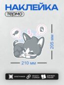 Дизайн: Спящий серый кот с мечтами о рыбе и банке. — идеально подходит для декора и восстановления одежды.