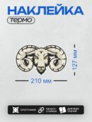 Дизайн: Стилизованная голова барана с большими рогами и желтыми глазами. — идеально подходит для декора и восстановления одежды.